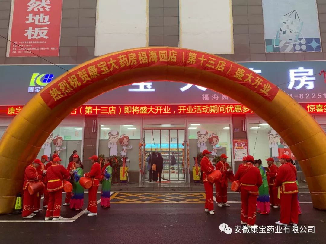 探索新模式、拓展新市場,2019年1月8日上午,康寶大藥房福海園店(第十三店)盛大開業。醫院集團董事長江鴻方、醫院集團董事、康寶董事長朱興林、鳳凰醫院劉春生院長、王智書記及領導班子成員、康寶藥業領導及部分員工參加了藥店的開業儀式。