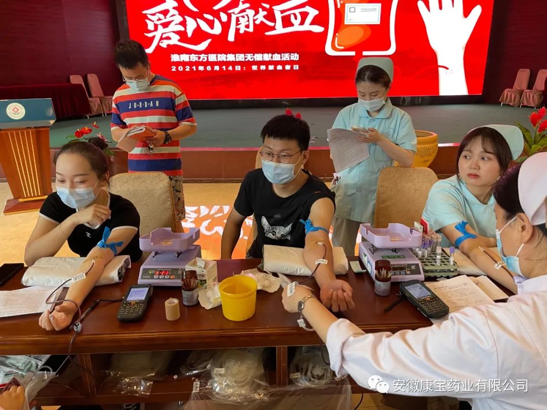 6月12日上午,淮南東方醫院集團在總院多功能廳開展無償獻血活動。康寶藥業積極響應,積極參與。
